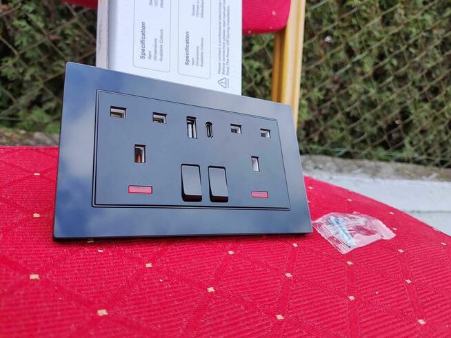 Gniazdo Elektryczne Gniazdko natynkowe Podwójne Czarne z USB USB-C Podświetlane. Nowe. Bardzo dobra jakość. Czarne, ...