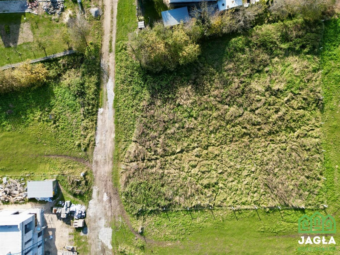 Front działki to 35m, głębokość 37m, tylnia ściana 42m. Dojazd drogą utwardzoną.